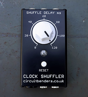 Clock Shufflers are available in the SHOP. Designed to sit between a master clock generating a stream of analogue clock pulses and a synced machine, to add continuously variable shuffle and swing. |