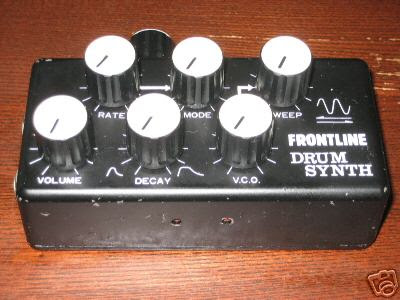 The Frontline Drum Synth is one of those mysterious machines that seems to come in many different incarnations and under various different names. We've seen exactly the same machine under the names Frontline, Coron DS7, MXR and at the time of writing this there are three FAULTY versions of this under the name Grant S7 up for auction on ebay, all of them selling for over £65! It makes you wonder how much they would go for if they said Roland on them instead of Grant or Frontline. They are all exactly the same so we're not entirely sure what people think they are buying there.